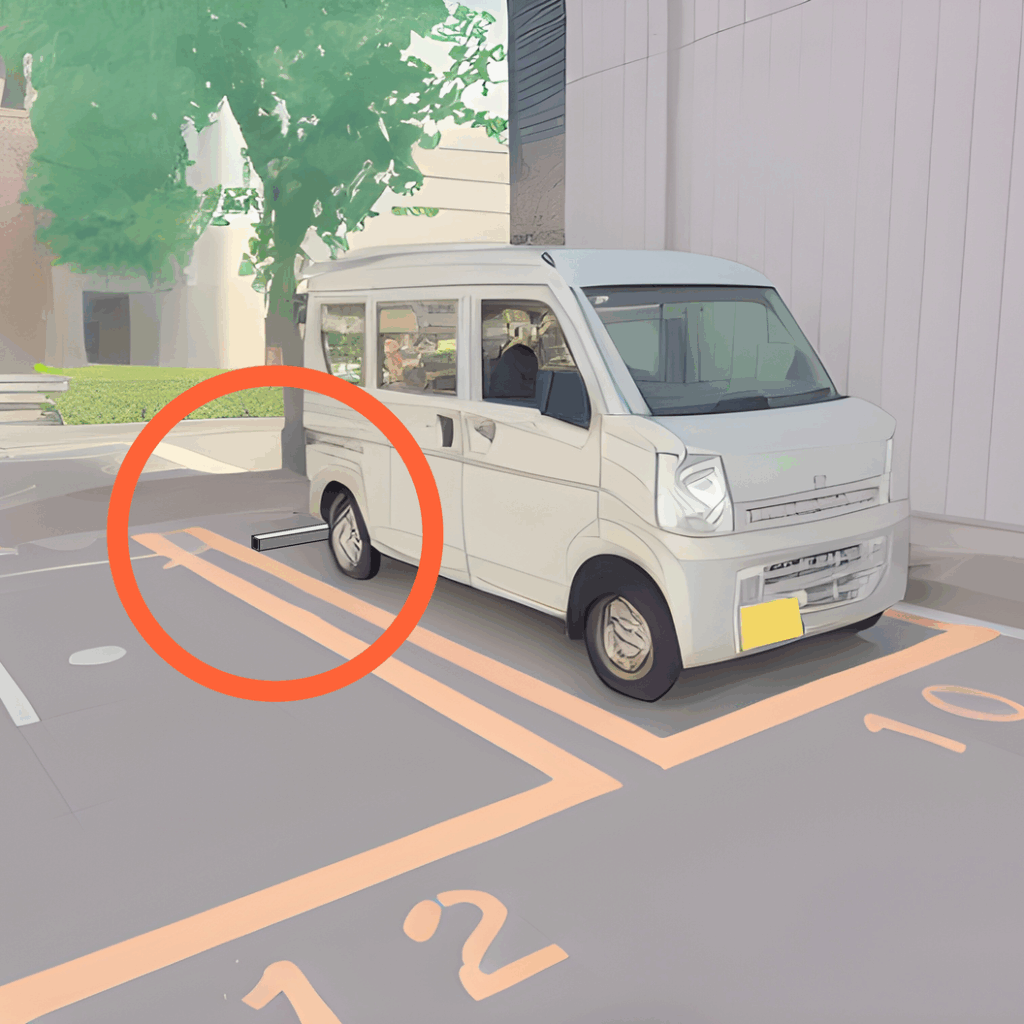 ③ 車止めまで下がって、駐車枠中央へ正しく駐車して下さい。