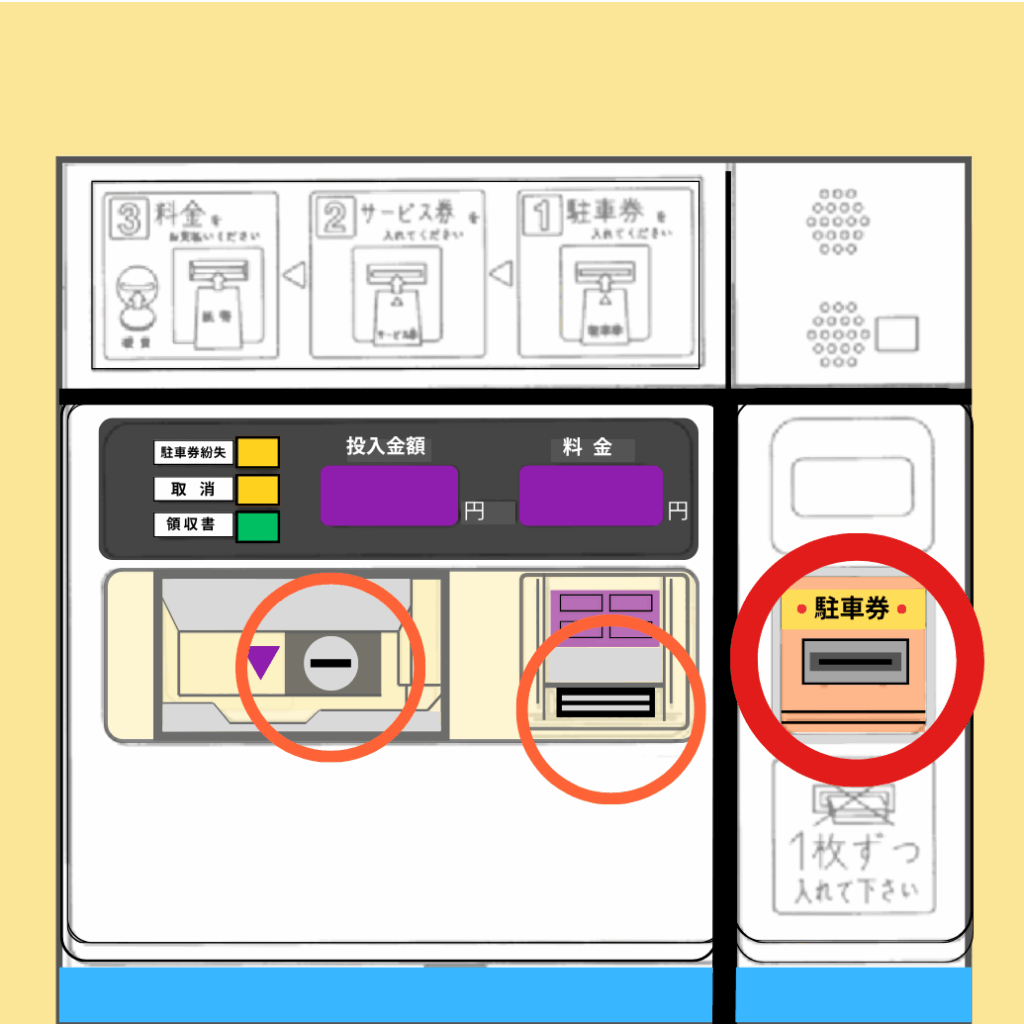 ・ 領収書は駐車券に印字され、駐車券投入口から発行されます。取り忘れにご注意ください。