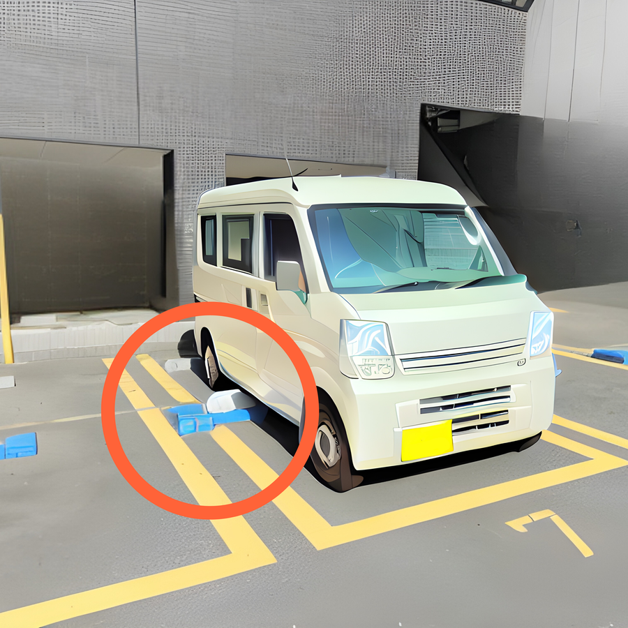 ・駐車枠より車両または付属品、積載物がはみだしてはいけません。・場内は自動車の駐車以外の用途に使用できません。カラーコーン、ロープ等にて封鎖している車室は駐車しないでください。