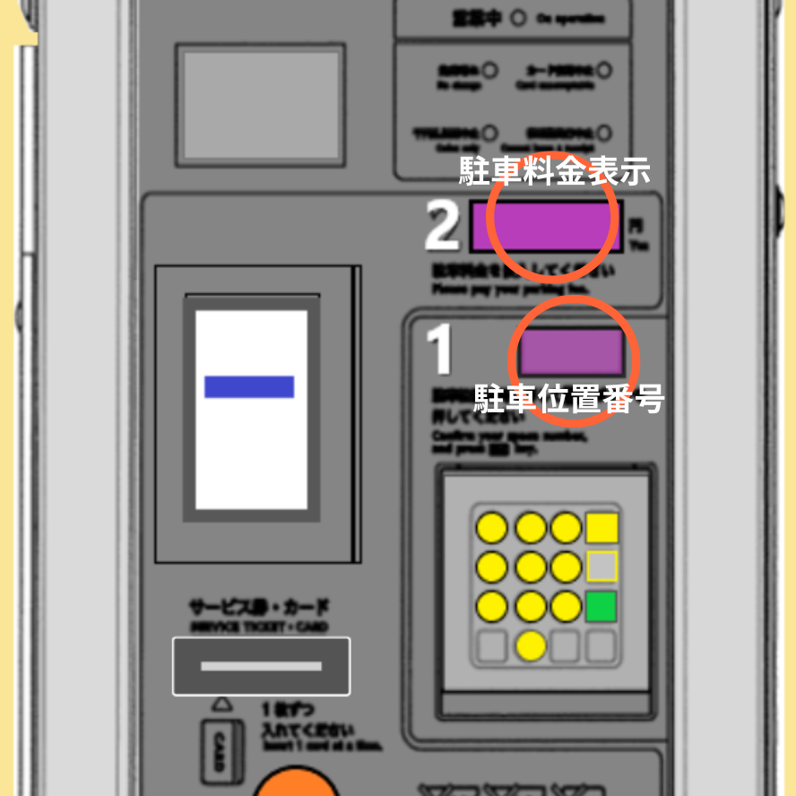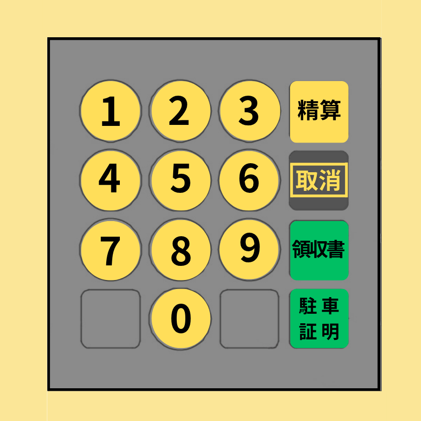 ① 駐車位置の番号を押し、精算ボタンを押して下さい。